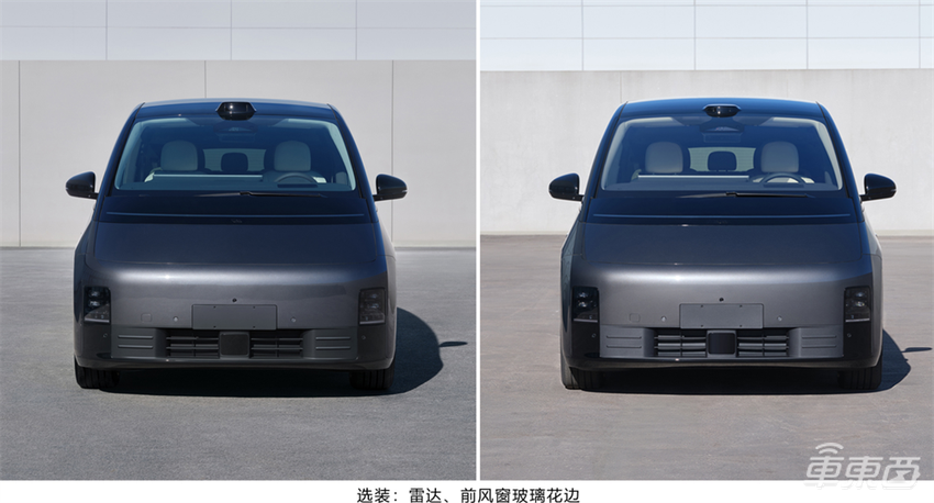 对比老款车型来看,新车外观上采用了体积更小的激光雷达,其余没有太大的变化,主要改变聚焦在智能驾驶硬件升级层面。